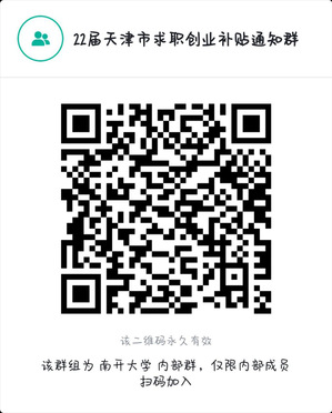 请申请22届天津市求职创业补贴的同学扫码加入飞书群,今后我们将对申请该补贴的同学进行就业帮扶。