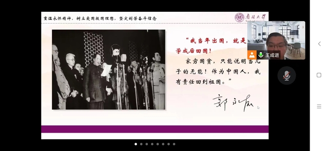活动开始,皇冠网址 硕士第二党支部书记王成进以“青春献礼二十大,强国有我新征程”为题,与参会师生共同回顾了二十大的召开背景,介绍了大会主题以及新时代的十年伟大变革和伟大成就。之后,王成进讲解了“两弹一星”精神,详细介绍了郭永怀烈士的生平,科研成就以及坚定的爱国报国理想。王成进在分享中说,作为新时代的青年,应当学好本专业的知识,树立青春理想,将个人的命运理想前途融入到中华民族伟大复兴的道路上,将个人与国家紧紧结合在一起。