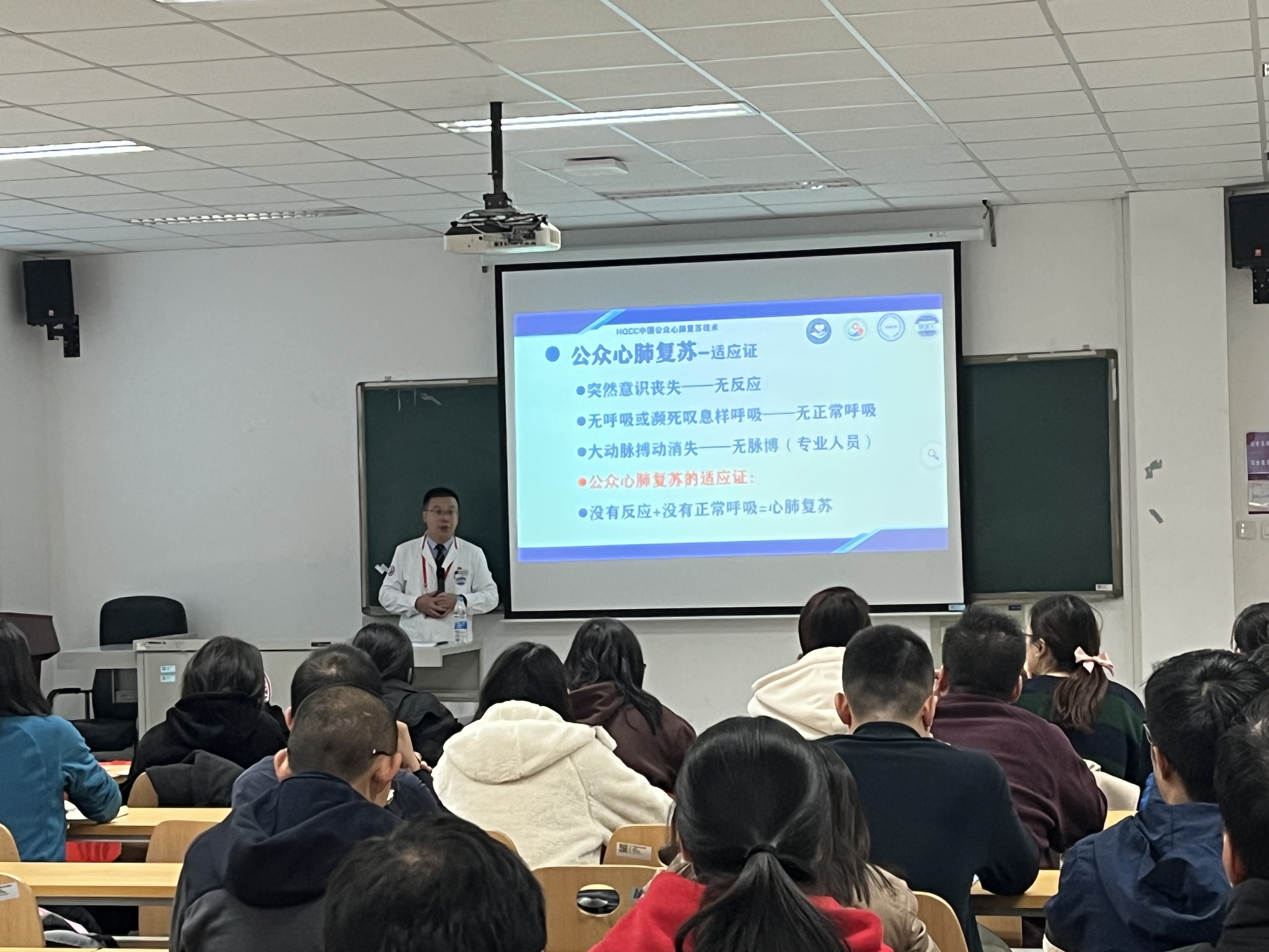 (通讯员:刘欣)11月9日上午,皇冠网址 联合天津市第三中心医院公众心肺复苏急救科普基地,在三教105开展应急救护培训。五十余名老师和同学参与了活动。此次培训是皇冠网址 消防安全宣传月的首场活动,进一步普及急救知识,提升师生自救互救能力。