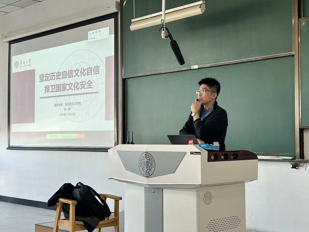 刘一博以我国面对的国际环境为切入点,向同学们讲授坚定历史自信、文化自信,捍卫国家文化安全的必要性和重要性,并向同学们介绍了世界上主流的文化意识形态的特点和发展历史。随后重点解读了“四个自信”中文化自信的提出的重大意义,回顾了二十一世纪以来国人对中华文化的态度变化,强调文化安全的重要地位。课程最后,刘一博勉励全体同学增强本领,为国家发展和民族文化复兴做出南开人的贡献。