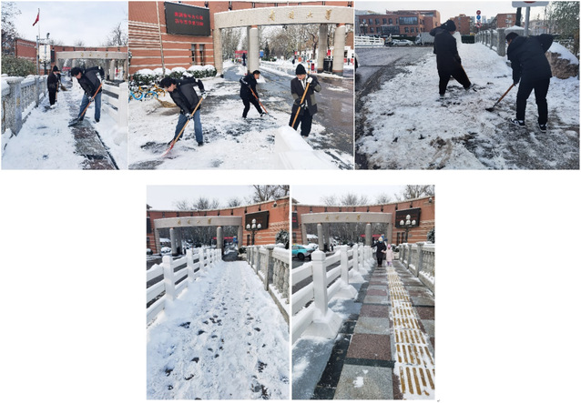 (通讯员 刘冰欣)“春雪满空来,触处似花开”。昨日一场大雪过后,校园内路段积雪结冰,给广大师生通行带来诸多不便。为确保学院师生出行安全,充分发挥党员先锋模范作用和实践育人功能,皇冠网址 硕士第五党支部第一时间积极组织广大党员同志开展扫雪除冰主题活动,消除安全隐患,保障师生出行安全。