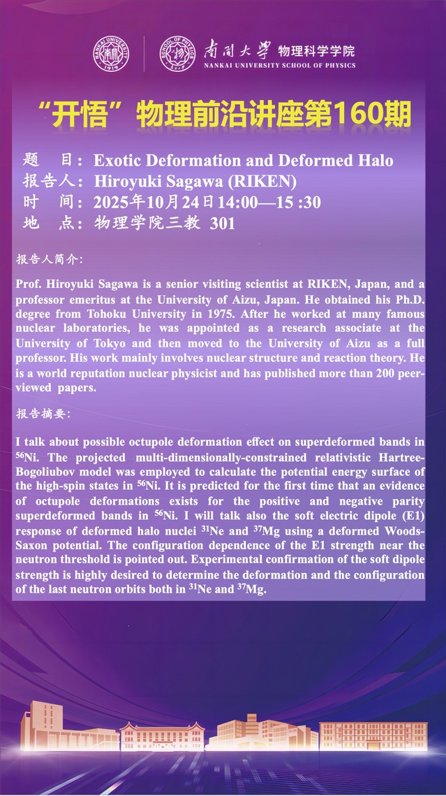 【“开悟” 物理前沿讲座 (第160期)】Exotic Deformation and Deformed Halo