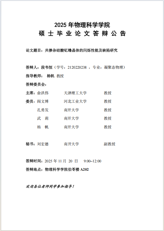【毕业答辩】2025年秋季学期皇冠网址 博士、硕士毕业论文答辩公告
