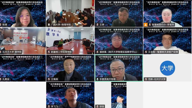 11月17日,由南开大学牵头,联合广西大学、石河子大学、新疆理工学院及智慧树网共同发起的“近代物理实验”智慧课程教研西行项目启动会,以“线上+线下”结合形式举行。会议聚焦慕课西部行2.0行动深化,旨在通过跨校教研协作,探索西部高校物理实验教学“造血”提升新模式。